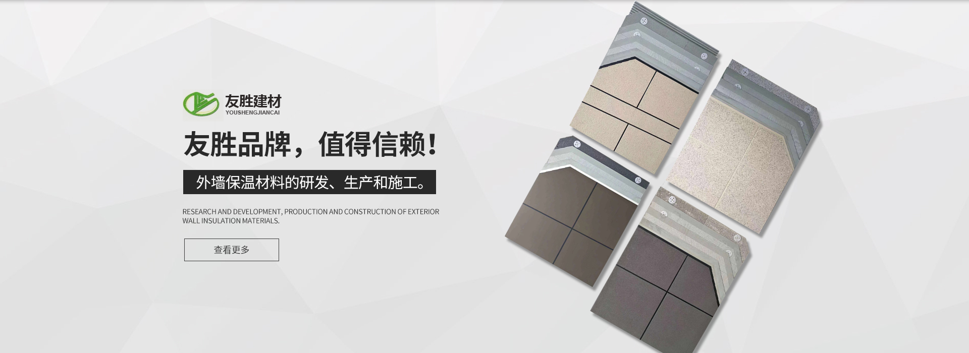 安徽友勝建材科技集團有限公司是一家專業(yè)從事建筑施工與節(jié)能保溫及裝飾裝修生產、施工企業(yè)。企業(yè)于2008年從事外墻保溫材料的研發(fā)。生產和施工。現(xiàn)公司旗下?lián)碛?安徽舒然裝飾 工程有限公司)裝飾裝修貳級資質、防水防腐及保溫貳級資質。旗下系列產品有:巖棉板、巖棉復合板、石墨聚苯板、珍珠巖板、勻質板、地坪保溫隔聲板,粘結、抹面及無機輕型材料等。